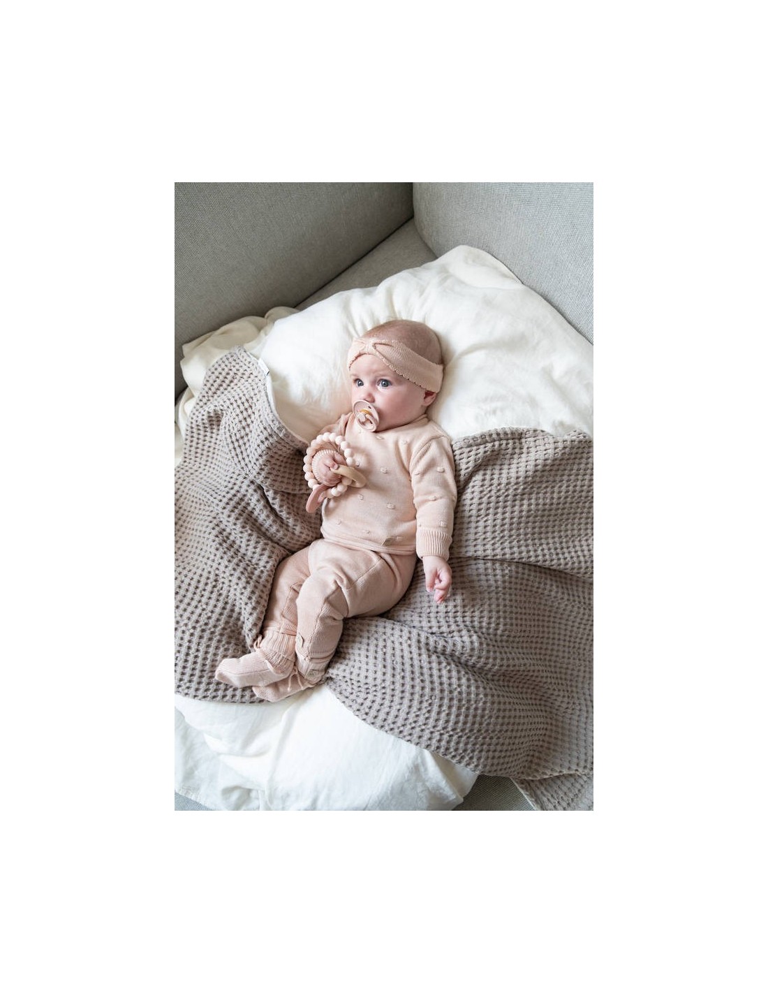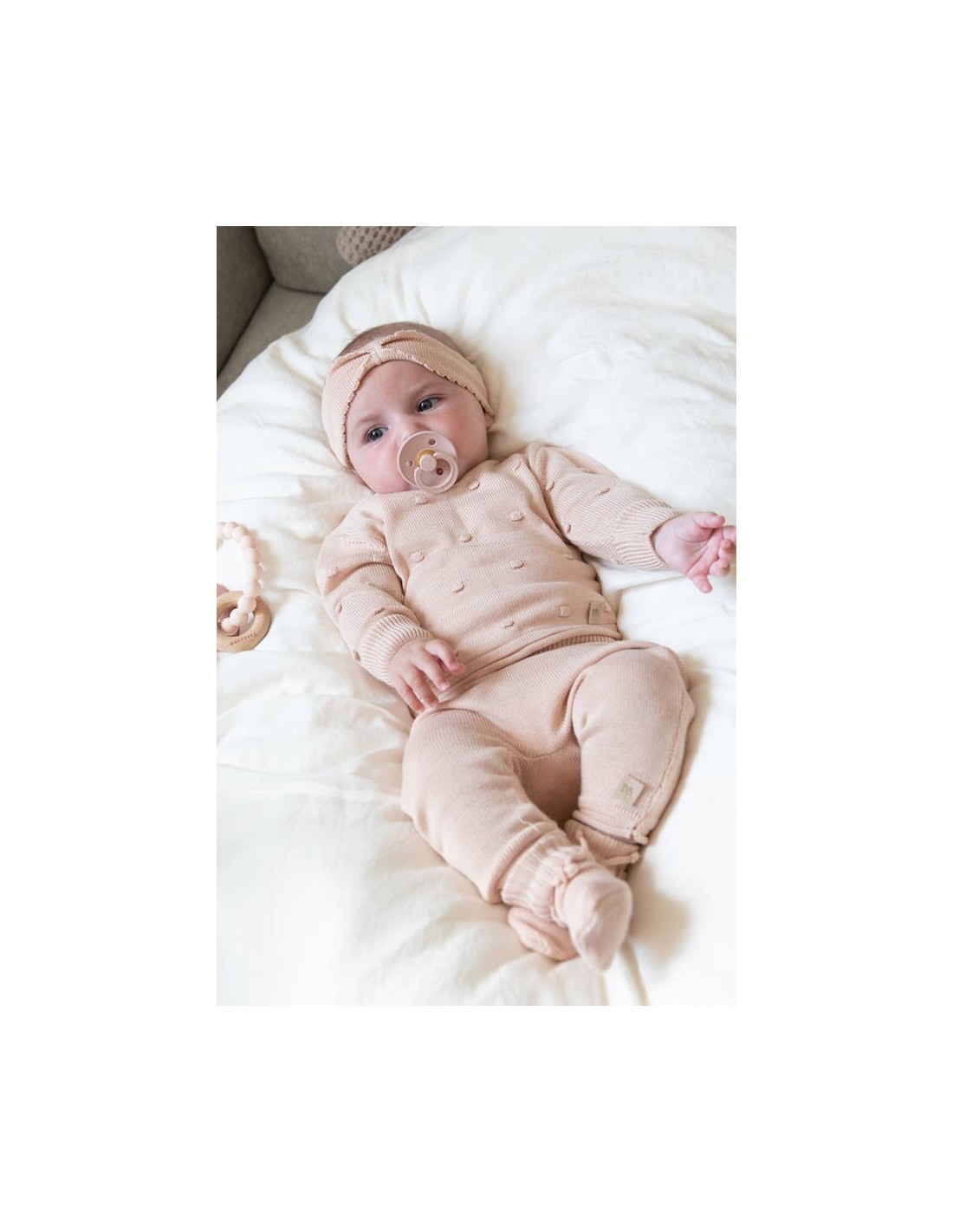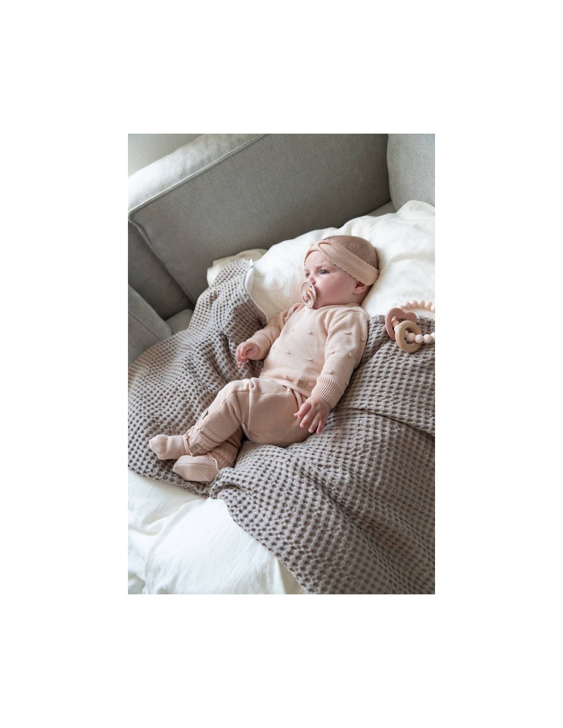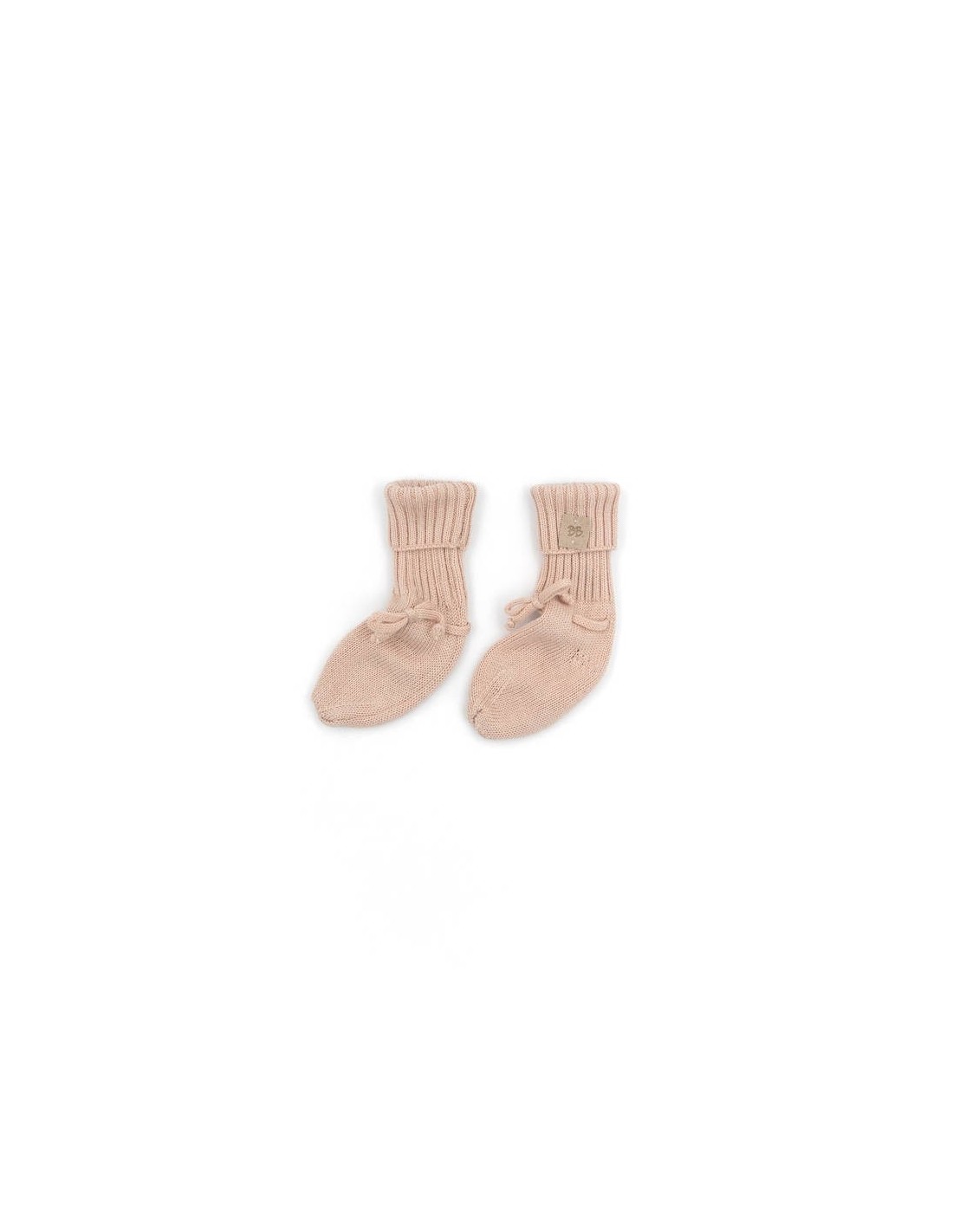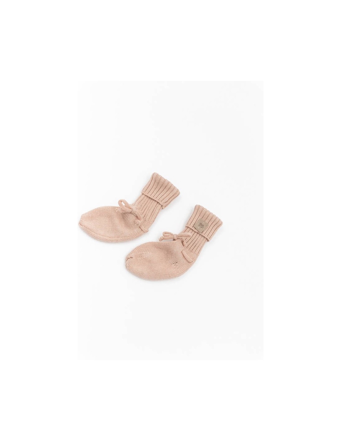 Los patucos de punto, fabricados con fibra de bambú ecológica, son cómodos y permiten que el bebé se mantenga a la temperatura adecuada en todo momento.