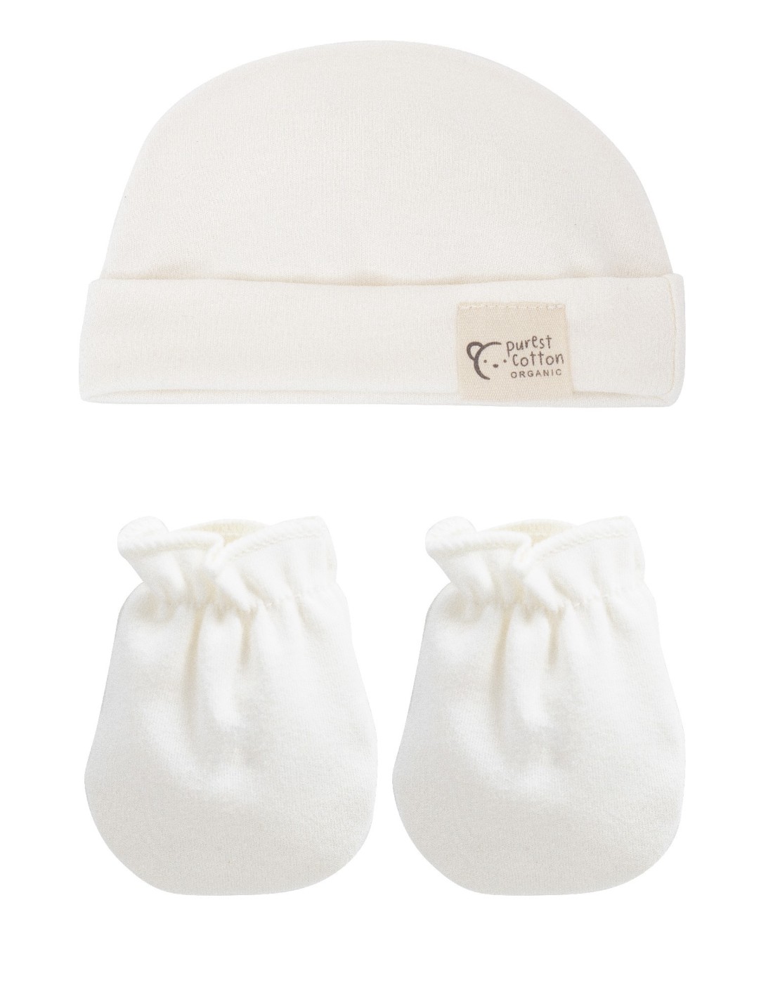 Pack de gorro y manoplas 100% algodón orgánico. Color natural.