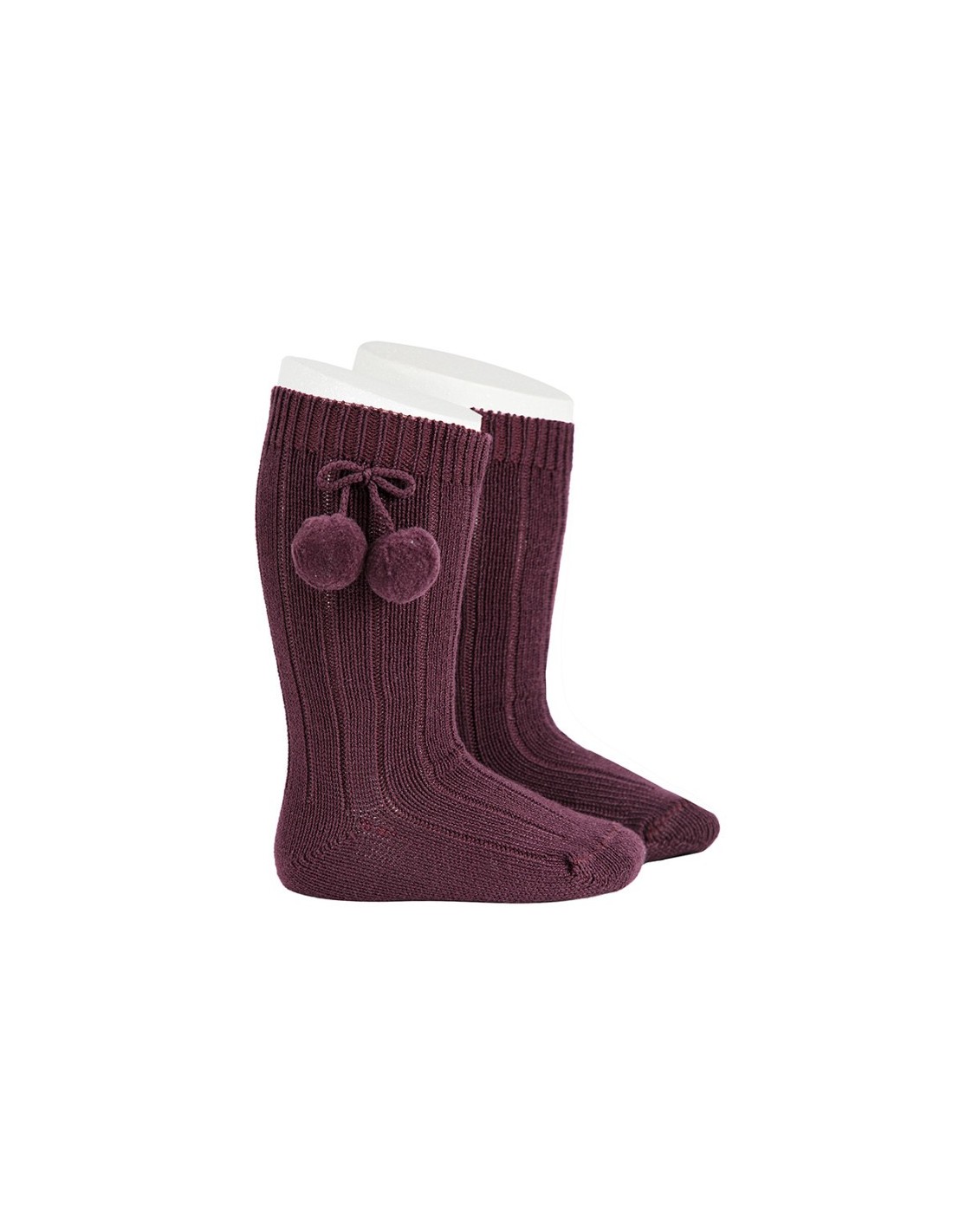 Calcetines altos de algodón cálido, largos por debajo de la rodilla y canalé con borlas a tono.