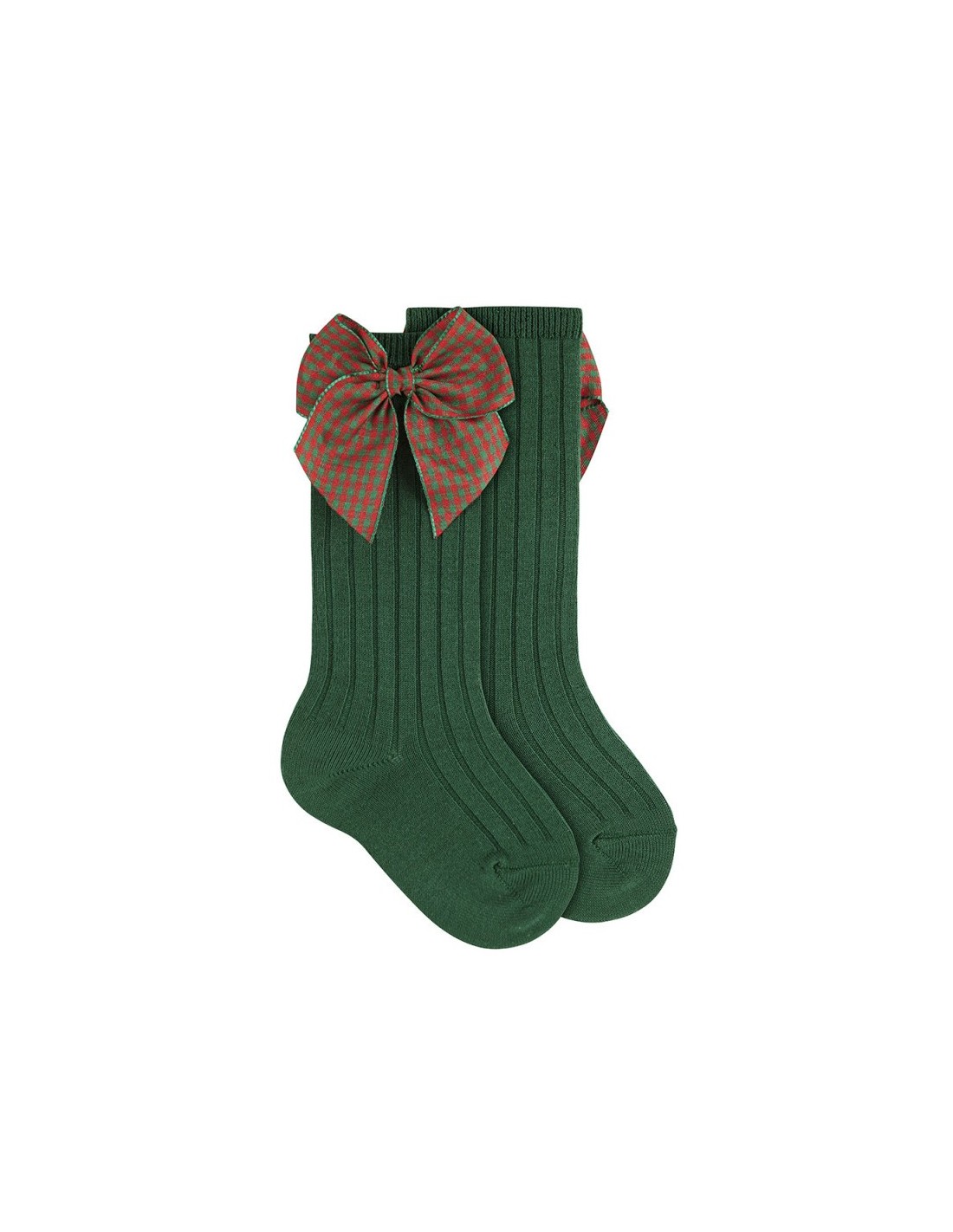 Calcetines altos de canalé con lazo de cuadro Vichy de Navidad.
