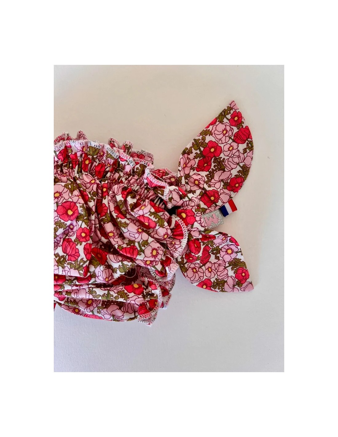 Este bañador está confeccionado en una fina batista de algodón Liberty, que ofrece una suavidad y delicadeza inigualables. Presenta fruncido en la cintura y los muslos, lo que garantiza una comodidad perfecta sin oprimir al niño.