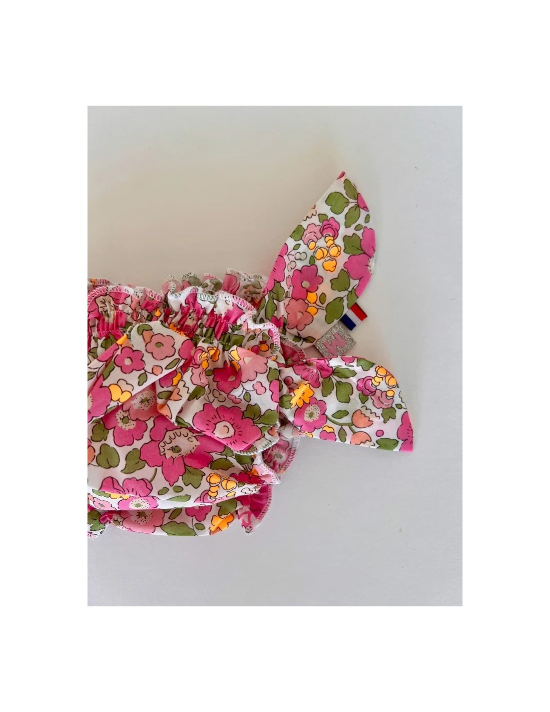 Este bañador está confeccionado en una fina batista de algodón Liberty, que ofrece una suavidad y delicadeza inigualables. Presenta fruncido en la cintura y los muslos, lo que garantiza una comodidad perfecta sin oprimir al niño.
