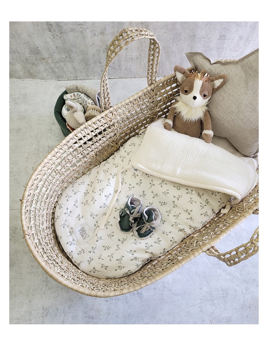 Saco para colocar en el interior del capazo del cochecito, de la minicuna o de un cesto. Se puede usar de los 2 lados. Su colchita está pensada para meses de entretiempo pero se abre totalmente para llevar al bebé destapado en los meses de calor.