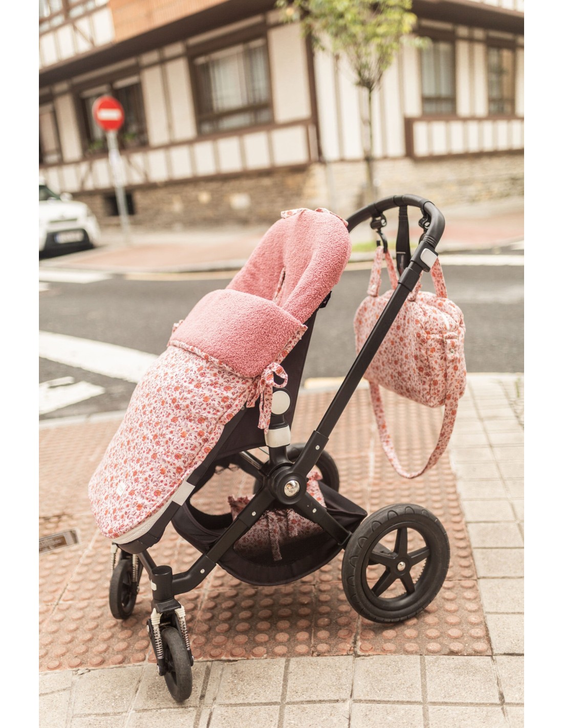 Confeccionado en tejido Flora y borrego rosa.