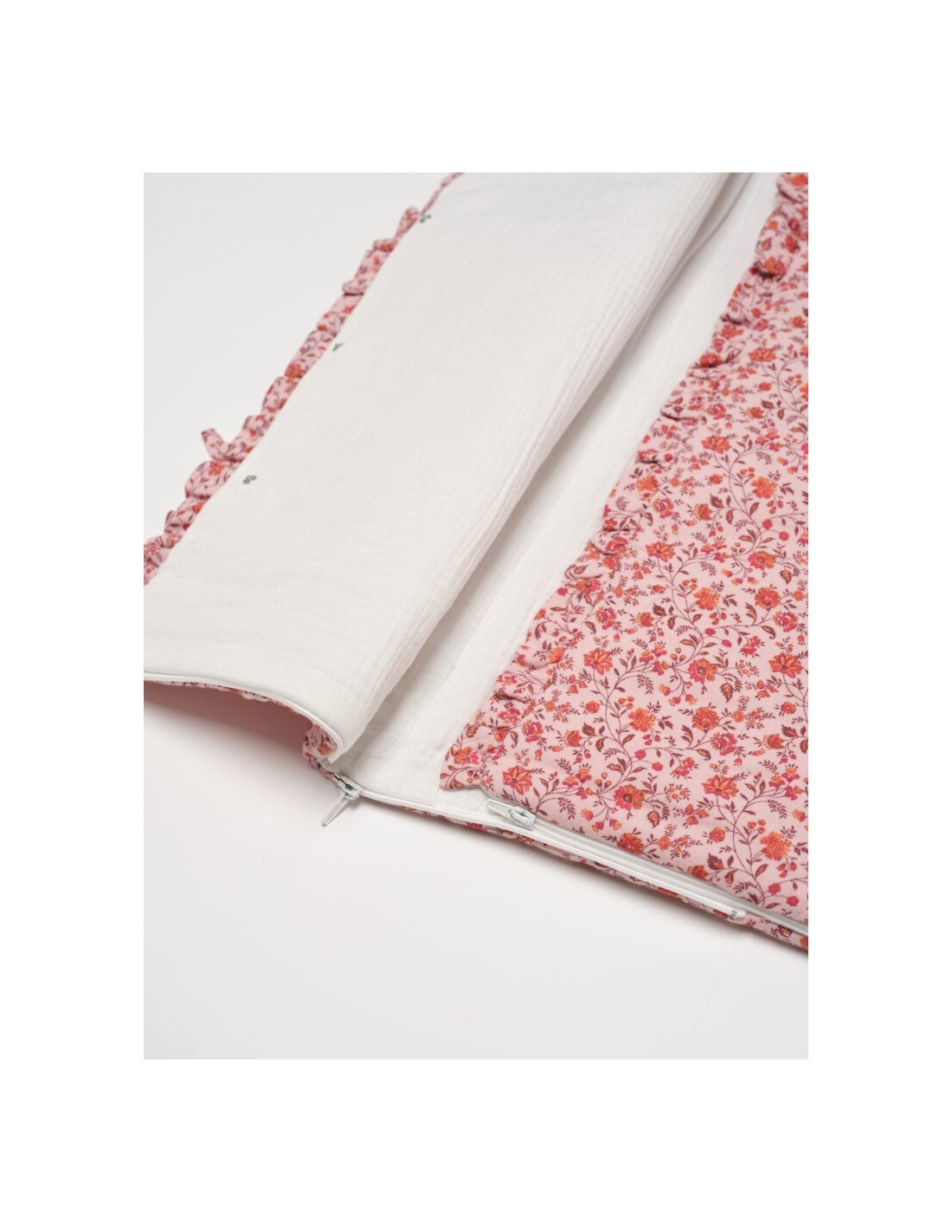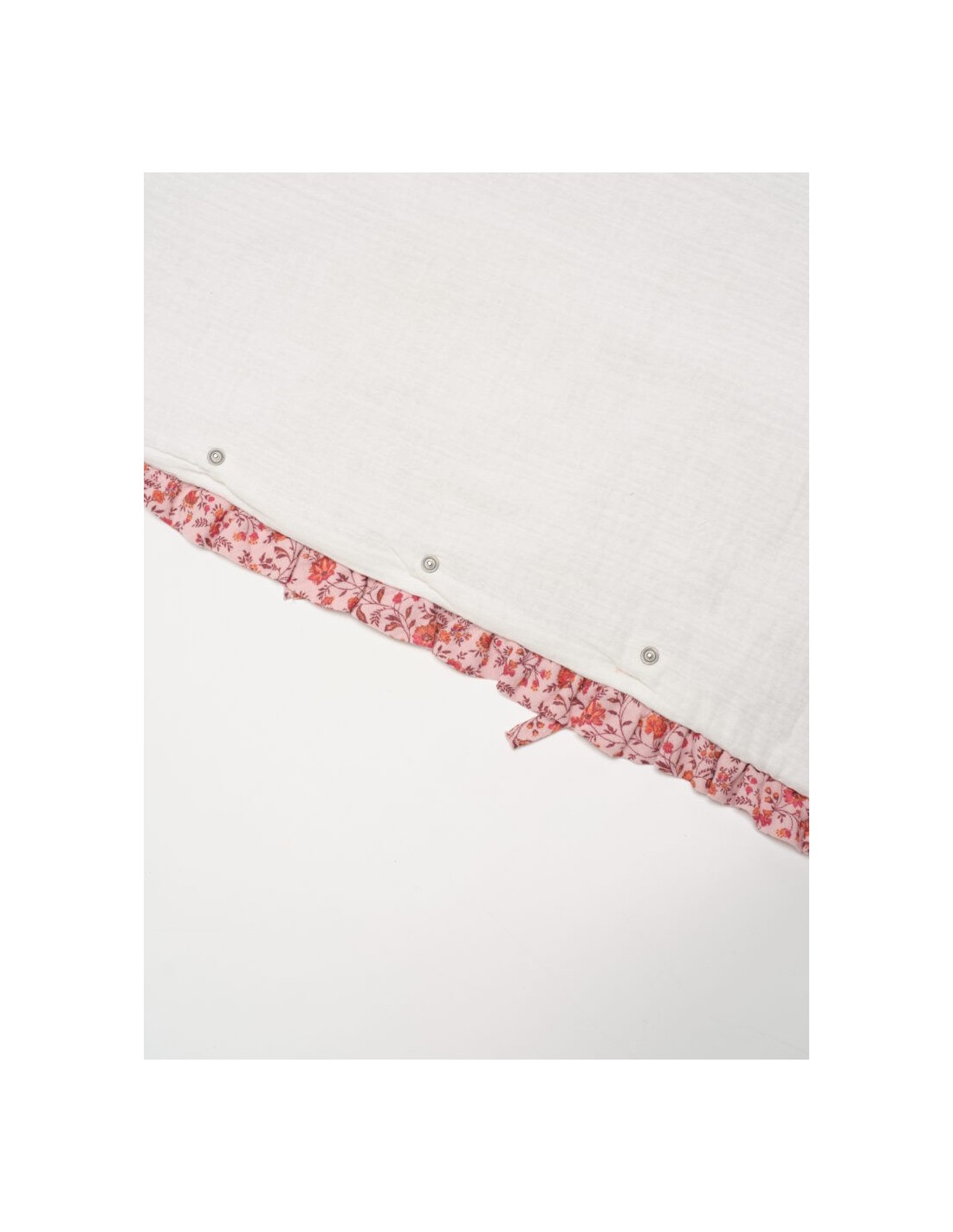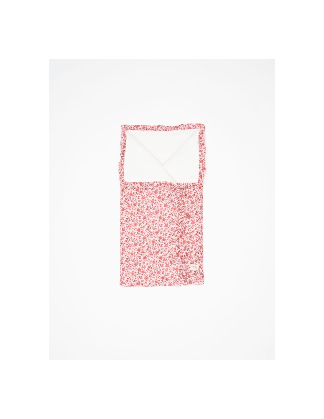 Saco capazo de bambula Flora. Ideal para los primeros paseos en el capazo y para arropar a tu bebé en la cuna o cuando lo tengas en los brazos. Se puede utilizar como arrullo o también se puede utilizar como mantita.