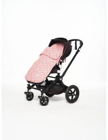 Saco universal para silla de paseo. Acolchado con una guata efecto pluma, el saco es totalmente extraíble mediante 2 cremalleras, para que pueda usarse como colchoneta los meses más cálidos. Parte trasera en Maya 3D, un tejido acolchado y transpirable. Agarre mediante gomas, vueltas y lazos. Confeccionado en tejido Flora.