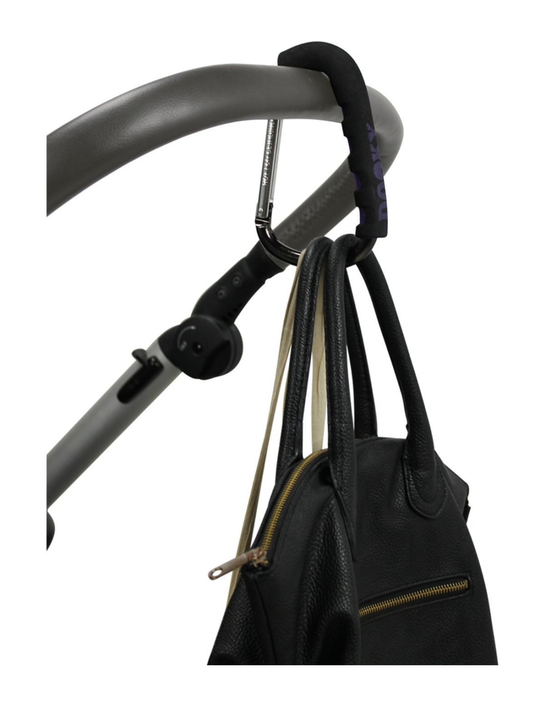Un gancho resistente con mosquetón que permite asegurar tu bolso a la barra de empuje de tu cochecito, silla de paseo o carrito de la compra. Olvídate de las bolsas de plástico afiladas que te cortan las manos. Súper práctico y cómodo, se abre y se cierra con una sola mano.